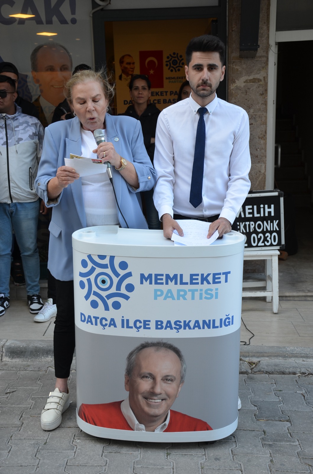 Memleket Partisi Datça İlçe Başkanı Anber Tanır ilçe teşkilatı önünde Memleket Partisine yapılan sözlü saldırıya karşı partililer ile birlikte cevap vermek için basın açıklaması yaptı.