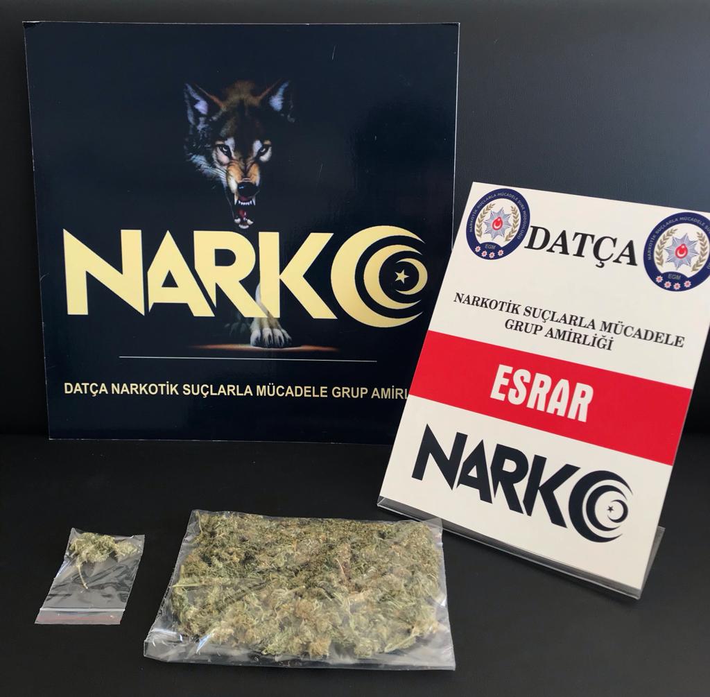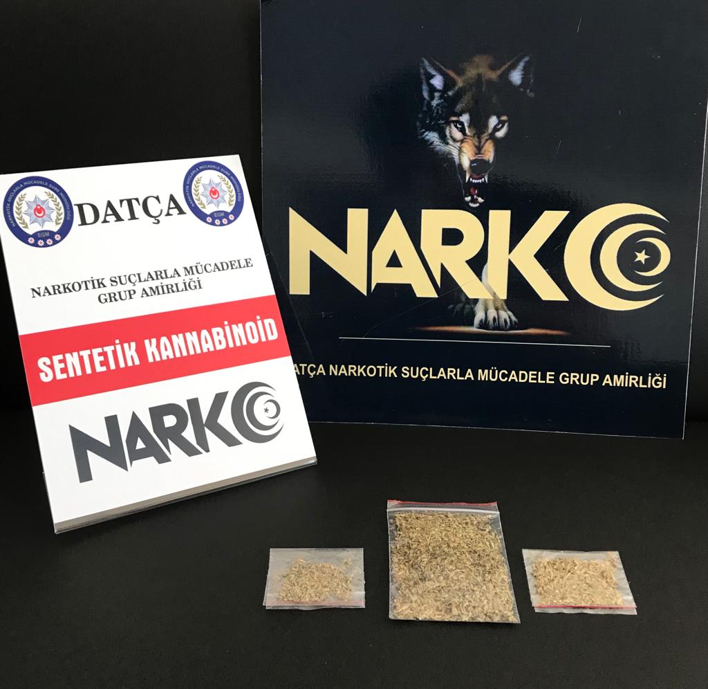 Datça İlçe Emniyet Müdürlüğü Narkotik Suçlarla Mücadele Grup Amirliği tarafından uyuşturucu madde ticareti ve kullanımını önleme çalışmalarında iki günde peşpeşe operasyonlarda İl dışından ilçemize uyuşturucu madde getirdiği tespit edilen Ö.B (46) ve O.K (25) isimli şahıslar yakalanmış, şahıslardan sentetik kannabinoid (bonzai), esrar maddesi ve uyuşturucu hap ele geçirilmiştir. Şahıslar emniyette yapılan işlemler sonrası adli makamlara sevk edilmiştir.