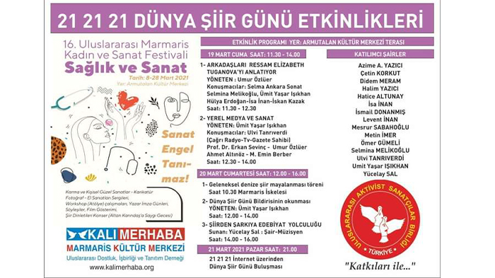 etkinliklerin, 20 Mart Cumartesi günü sabah saat 10.30 da Marmaris İskelesinden sembolik olarak Şiir Mayalama Töreni ile devam edeceğini, aynı gün saat 12.00 de UASB Başkanı Ümit Yaşar Işıkhan tarafından Şiir Bildirgesinin okunarak, şairlerin şiirlerini okuyacağını ve daha sonra da Yücelay Say tarafından hazırlanan “Şiirden Şarkıya Edebiyat Yolculuğu” adlı programın sunulacağını söyledi.