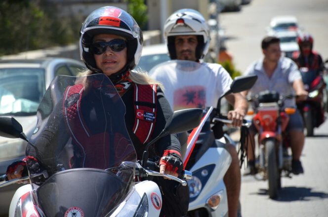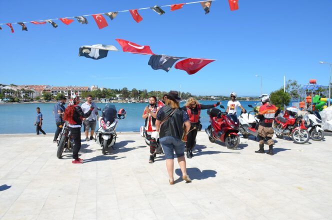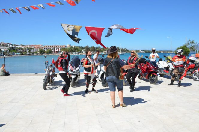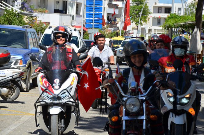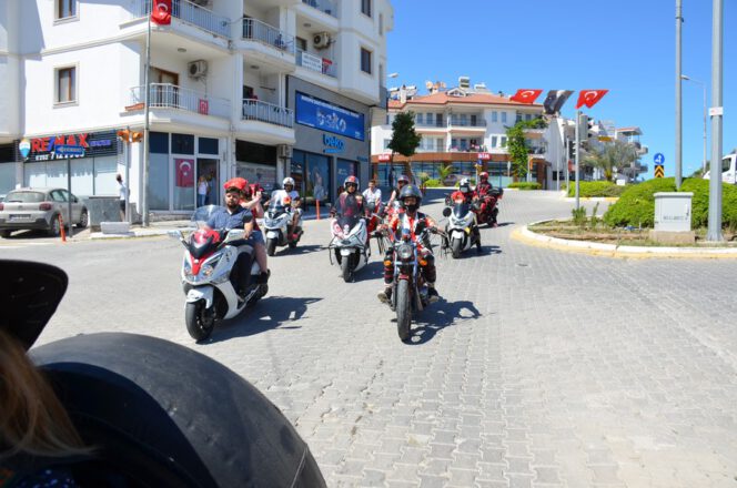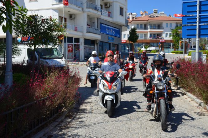 Datça’daki motosiklet tutkunları 19 Mayıs Atatürk’ü Anma Gençlik ve Spor Bayramını bir grup motosikletli, şehir merkezinde konvoy oluşturup tur attı.