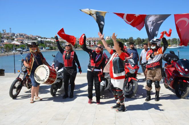 saat 15.00 sıralarında toplanan motosikletli bir grup, önlerindeki Malatyalı Özlem ( Özlem İSAR ) bir cip eşliğinde marşlar söyleyip, korna çalarak, Atatürk Caddesi güzergahı üzerinden Cumhuriyet Meydanı’na geldi. Cumhuriyet Meydanında bir süre marşlar söyleyen grup daha sonra Atatürk Caddesi, Ahmet Taner Kışlalı ve Kazım Yılmaz Bulvarları’nı takip ederek, Palamutbükü yol ayrımına kadar gitti. Motosikletlileri, yol kenarından izleyen vatandaşlar alkışlarla destek verdi.